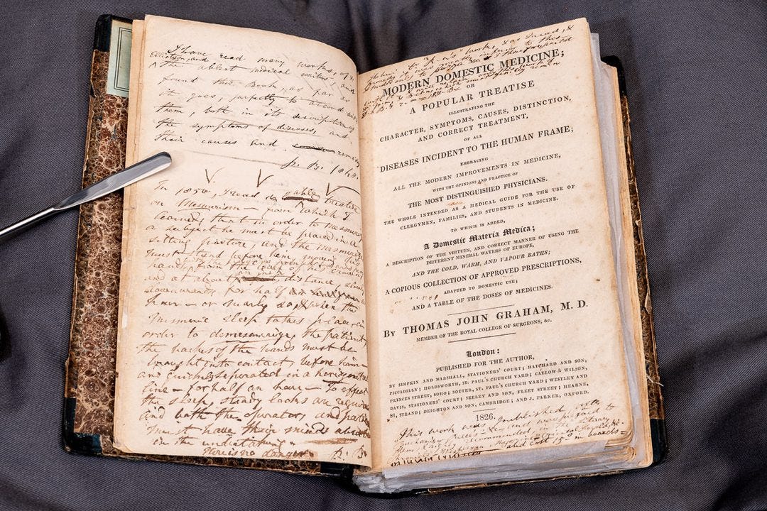 In another example, their father, Patrick, covered a medical book with his observation on the maladies affecting the family: