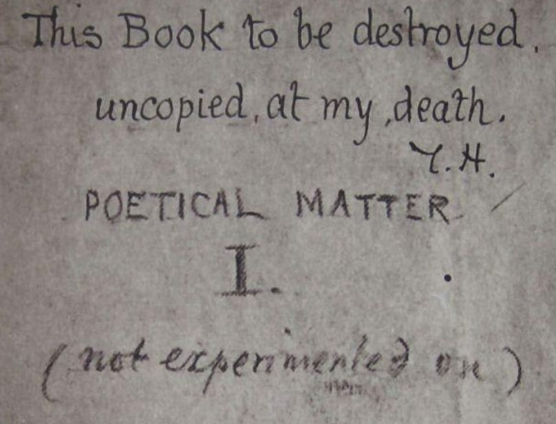 I don’t mean this literally, although you are, of course, free to burn your notes as Thomas Hardy did. I mean that you shouldn’t take your notes so seriously. No one will see them. (Unless, of course, you become really famous, in which case, please let me interview you!)