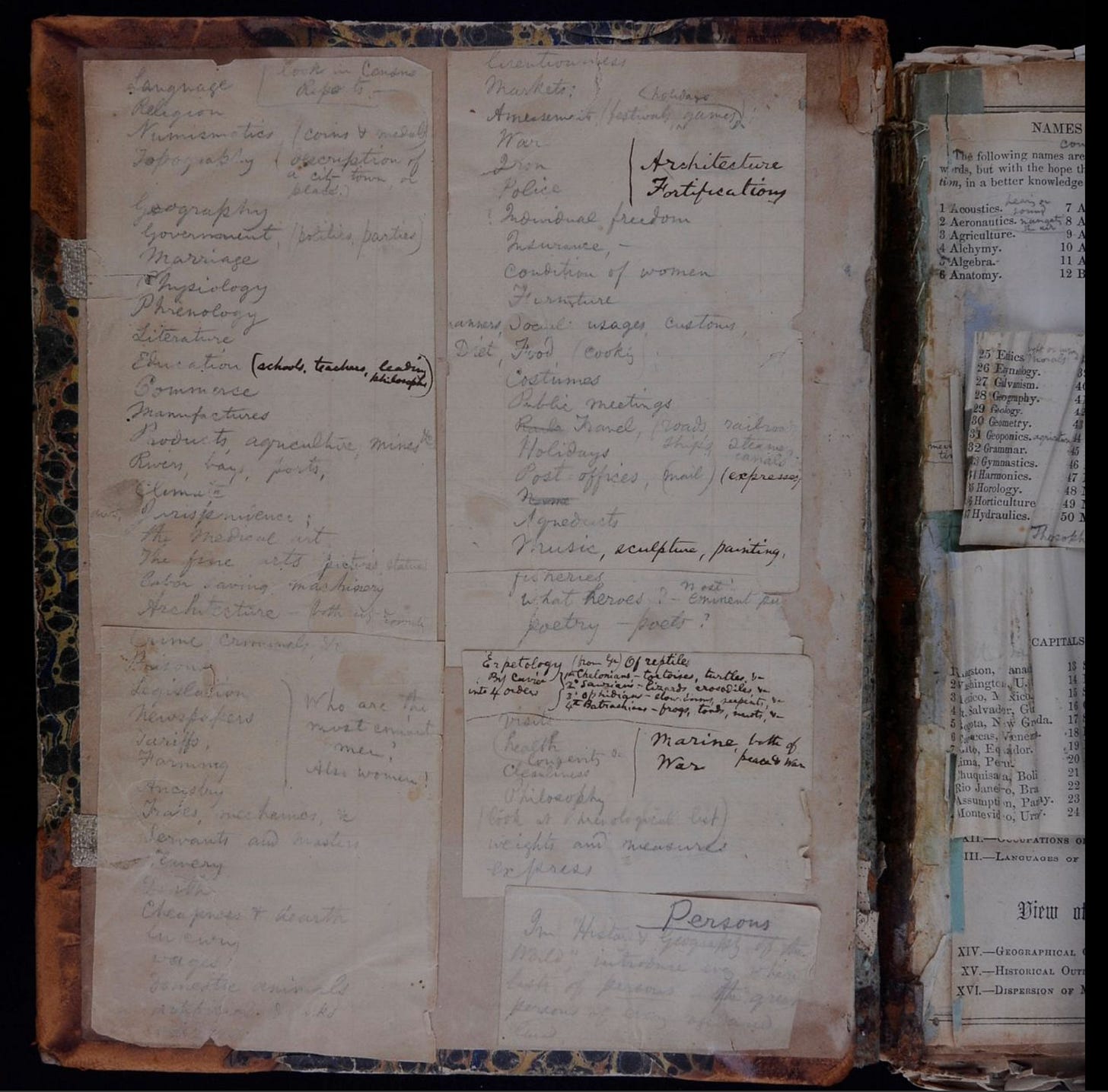If Whitman’s process was fragmented, it was also a continual attempt at unifying those fragments. Just as the United States began to fracture in 1856, Whitman began collecting scraps in a massive scrapbook that scholars refer to as the “Cultural Geography Scrapbook.” It would grow to include more than a thousand pieces of paper.