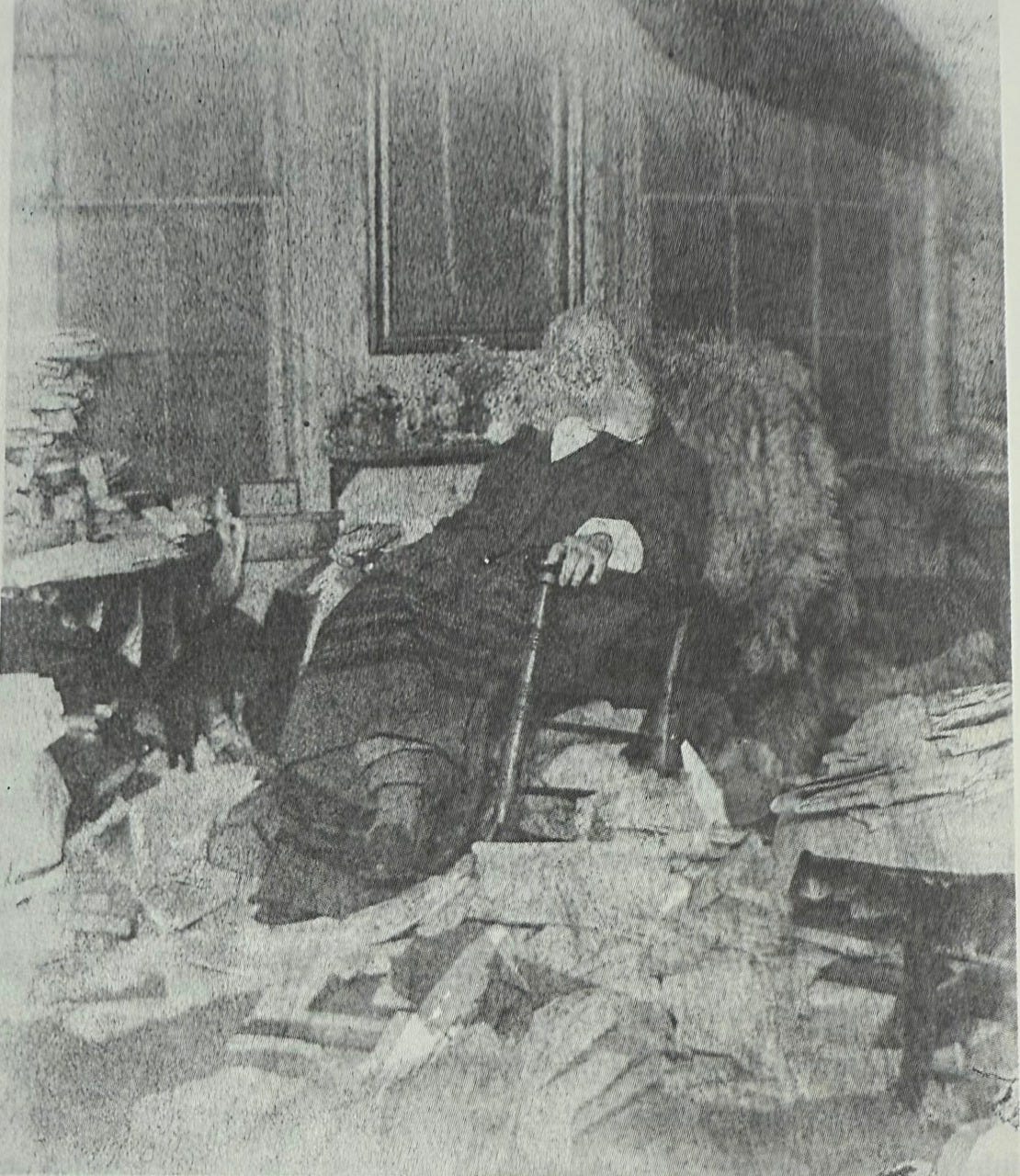 But, for the most part, Whitman left his scraps completely disorganized and in disarray. He wrote on scraps of paper—mostly unbound—surrounding himself (quite literally) in a flurry of paper. In a photograph from later in his life, we find Whitman surrounded by notes.